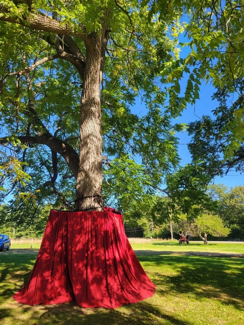 Created by lead artist Dan Daly and writer Lee LeBreton, Arborlogues invites participants into a red-curtained theater built around a chosen tree. Guided by a script, you become both performer and conversational partner with your arboreal audience. The result? A deeply personal encounter with presence, memory, ecology, and love.